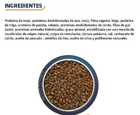 Es un alimento completo y equilibrado para gatos adultos, formulado para reducir el exceso de peso y regular el metabolismo lipídico en casos de hiperlipidemia. Es bajo en grasa y rico en ácidos grasos esenciales. Está clínicamente probado, ayudando a los gatos a reducir peso en 3 meses*, gracias a su alto contenido de fibra que genera un efecto saciante y reduciendo la grasa corporal. Además, está adicionado con L-Carnitina, que ayuda a quemar grasa y contiene un alto contenido de proteínas que contribuye al mantenimiento de la masa muscular, ayuda a mantener el peso corporal objetivo después de la pérdida de peso.