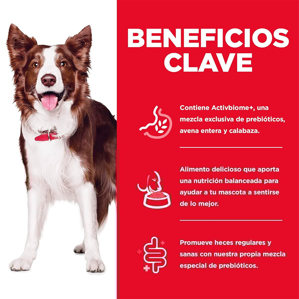 El alimento Perfect digestion de Hill's para perros adultos de 1 a 6 años ayuda a mantener la digestión de tu mascota en equilibrio. Este producto es una opción para los dueños de mascotas que desean apoyar el bienestar y el microbioma digestivo de su perro promoviendo la regularidad y la calidad de las heces ayudando a mantener la buena digestión con el apoyo de la tecnología ActivBiome y fibras nutritivas.