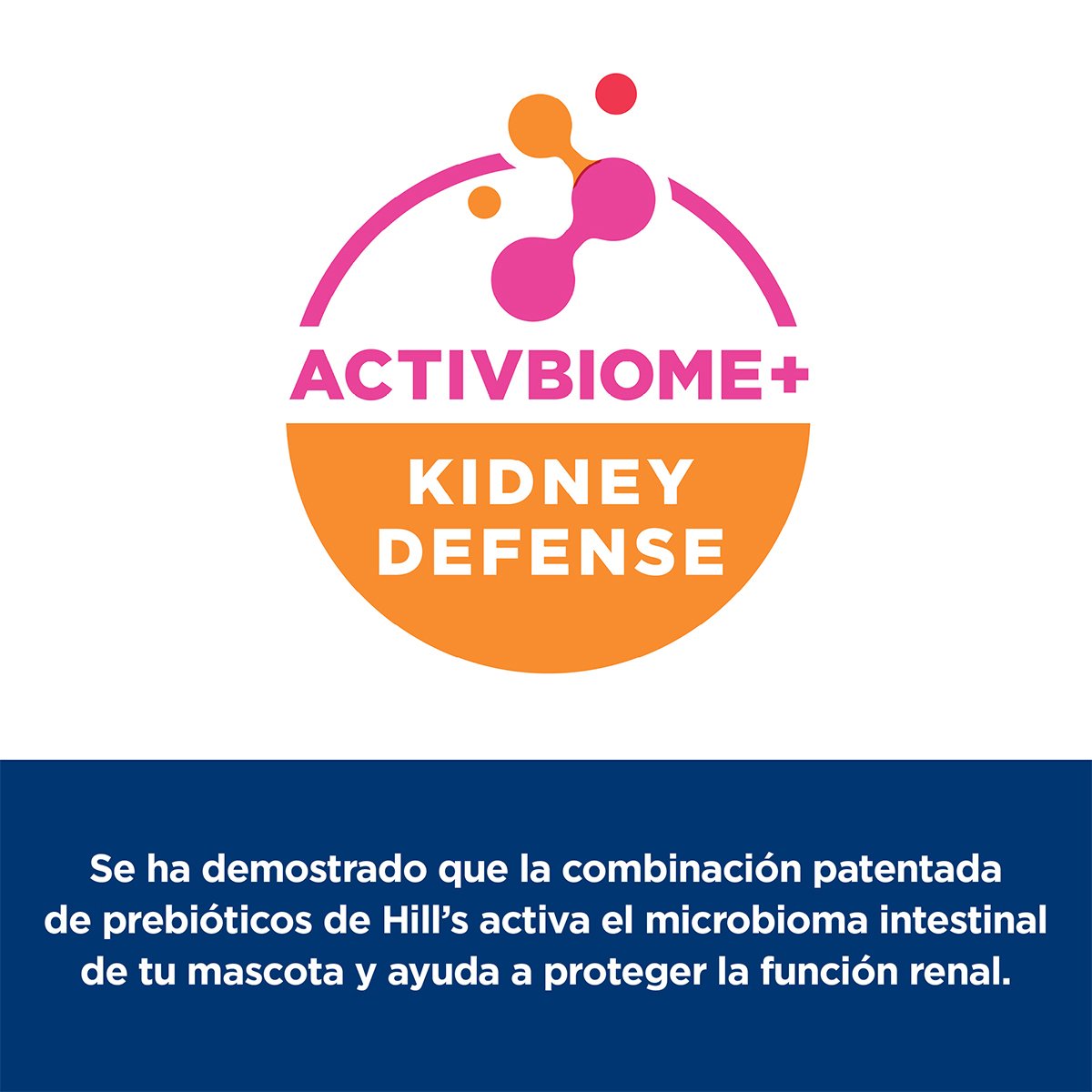 Hill's® Prescription Diet® k/d® Feline es un alimento completo y equilibrado que proporciona toda la nutrición que su gato necesita. Por favor consulte a su veterinario para mayor información sobre cómo pueden los alimentos Prescription Diet® ayudar a su gato para disfrutar de una vida feliz y activa. Cloruro de sodio Reducido Ayudar a controlar los signos clínicos asociados con el sodio y retención de líquidos (ascitis/edema) y minimizar la hipertensión sistémica y renal (primaria). Fósforo Reducido Ayudar a retardar la progresión de la enfermedad renal. Proteína Calorías no de proteína Reducidas incrementadas Ayudar a satisfacer las necesidades nutricionales a la vez que se reduce la carga de trabajo al riñón. Capacidad amortiguante de la dieta Incrementada Ayudar a contrarrestar la tendencia a la acidosis metabólica, una complicación común de la falla renal, para ayudar a disminuir el desgaste muscular. Antioxidantes Añadidos Defender las células de la oxidación de los radicales libres, promoviendo un sistema inmunológico sano Vitaminas del complejo B Añadidas Ayudar a compensar las pérdidas urinarias debidas a la enfermedad renal.