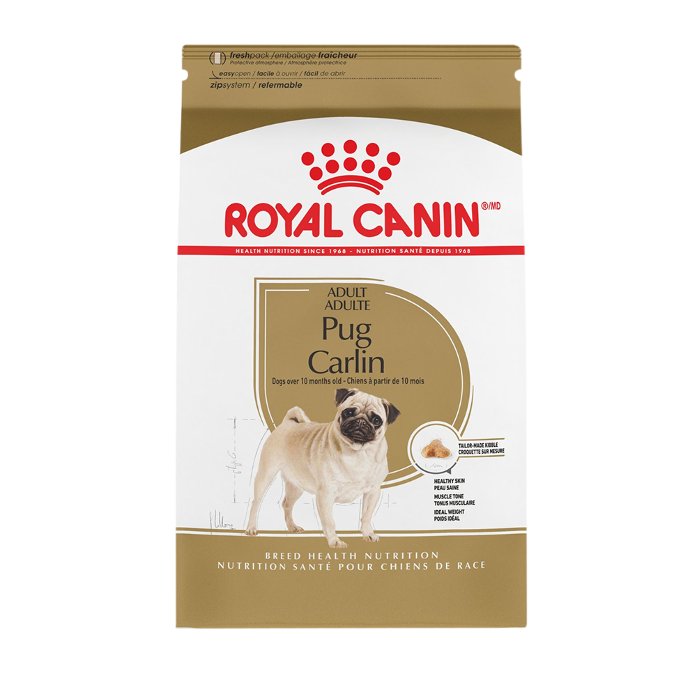 Piel saludable La nutrición desempeña un papel Importante en el mantenimiento de la piel saludable en el Pug. La exclusiva fórmula Pug Adulto ayuda a promover la función protectora de la piel gracias a un exclusivo complejo de nutrientes y ayuda a mantener la piel saludable (EPA y DHA). Tono muscular Esta fórmula ayuda a mantener el tono muscular del Pug gracias a un contenido adecuado de proteínas. Contiene L-carnitina. Peso ideal El aumento excesivo de peso puede afectar a la salud del Pug. Una alimentación adecuadamente balanceada es necesaria para su salud. Esta fórmula ayuda a mantener el peso ideal del Pug. Diseño exclusivo de la croqueta: Especial mandíbula braquicéfala El Pug tiene una cabeza grande y redonda con un hocico corto y cuadrado. Su mandíbula característica y sus labios voluminosos hacen que tenga dificultades para levantar su comida. Las croquetas Pug Adulto en forma de trébol han sido diseñadas para facilitar la prensión y la masticación en el Pug.