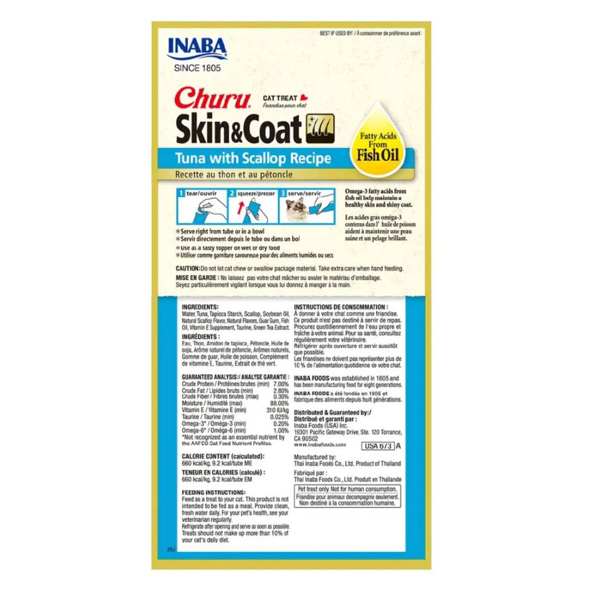Churu Premio Cremoso Cuidado Piel y Pelo para Gato Todas las Edades Receta Atún con Escalopa 4 pzs