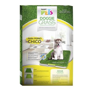 DOGGIE GRASS CH Cuenta con 1 tapete de pasto sintético, 1 rejilla de goteo y 1 bandeja, que permite entrenar al cachorro fácilmente dentro del hogar y es la solución perfecta para todo tipo de perros de hasta 7 kg, que no puede salir frecuentemente a realizar sus deposiciones. Ventajas: